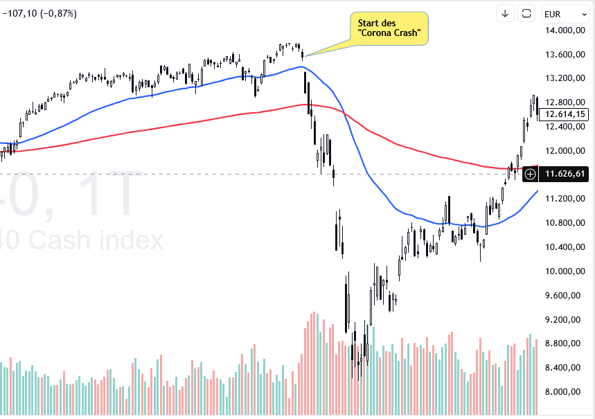 Beispiel: Siehe Chartbild zu Corona Zeiten. Hier hatten wir eine enorme Unsicherheit unter den Investoren. Diese Unsicherheit führte zu Gewinnmitnahmen und schließlich sogar zu Panik, was einen enormen Verkaufsdruck erzeugte.